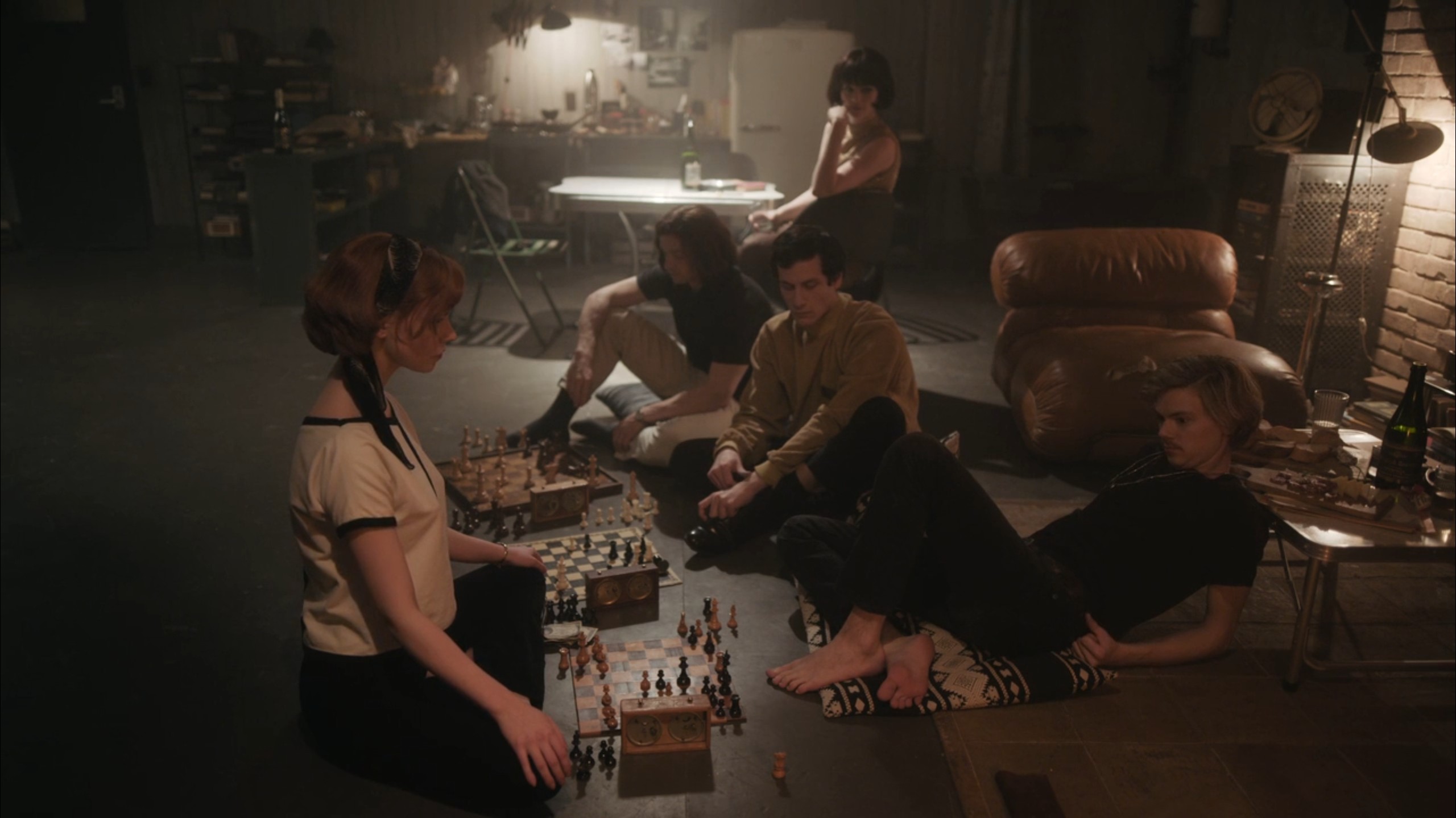 작은 체스판 안에서 벌어지는 치열한 수 싸움이 하먼에게 매력적으로 다가오고 매일 밤 고아원에서 주는 신경 안정제와 함께 천장에 체스판을 그려 상상속으로 말을 움직이며 체스를 둡니다.