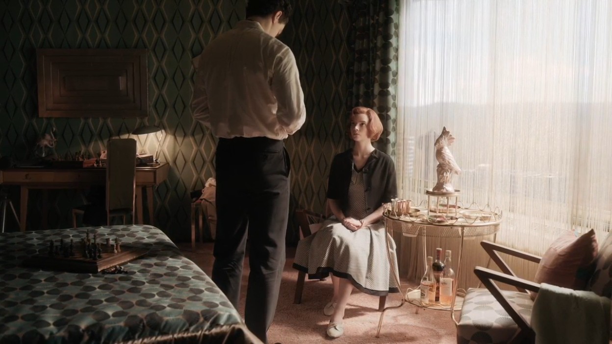 퀸스갬빗의 주인공인 엘리자베스 하먼은 9살 때 교통사고로 어머니를 잃고, 아버지와는 오래전부터 연락이 끊겨 고아원에서 자랍니다.