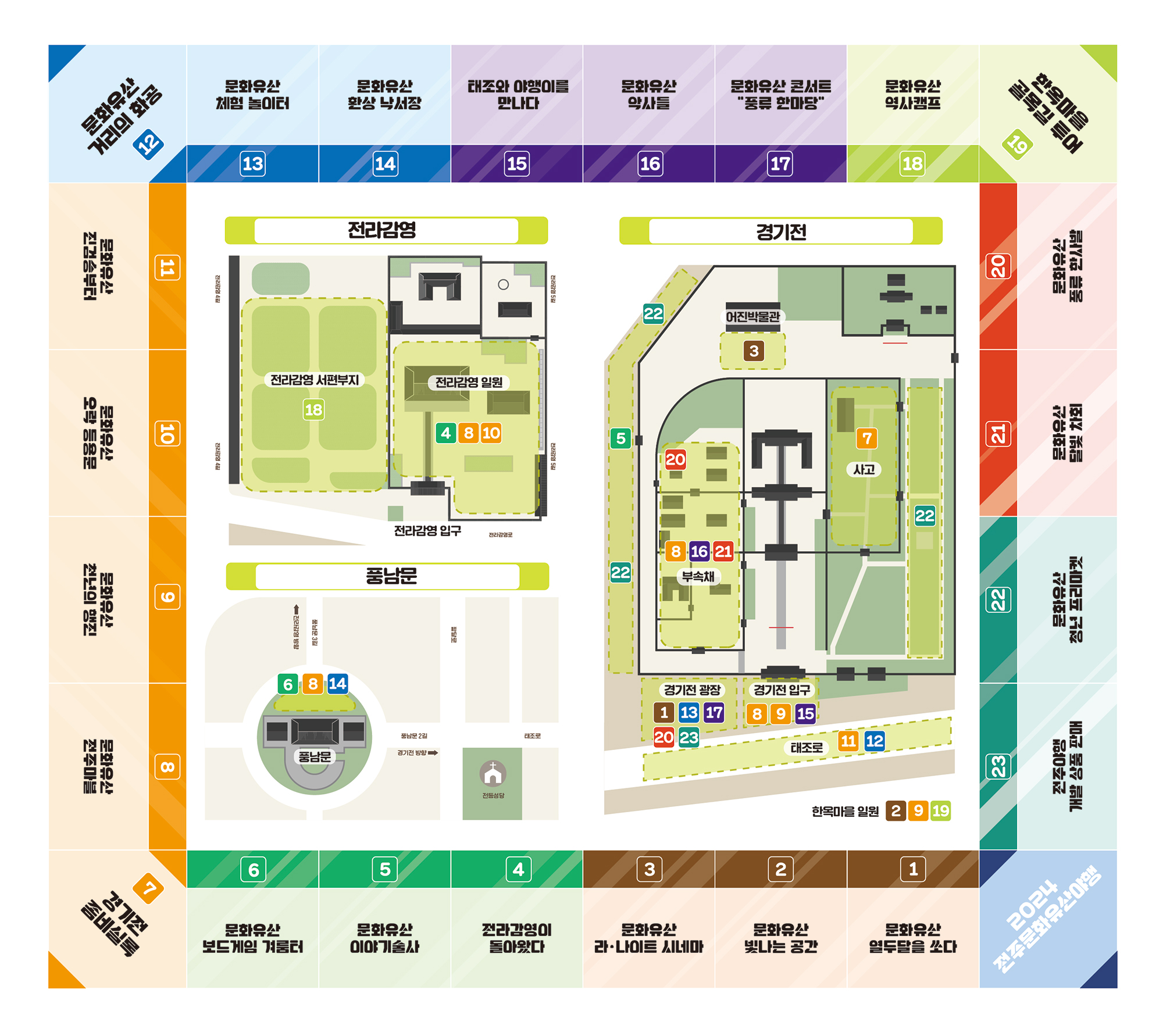 전주 한옥마을, 경기전, 풍남문, 전라감영 일대에서 다양한 분야의 프로그램을 즐기도록 구성됬습니다.