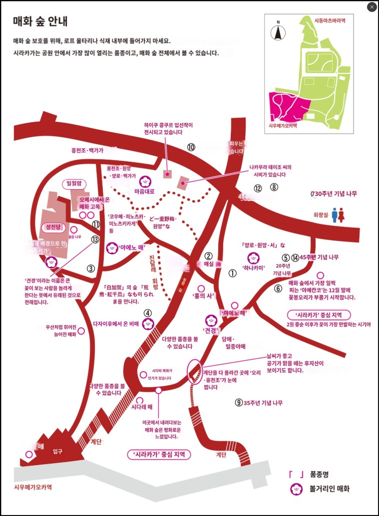 벚꽃보다 일찍 찾아오는 매화는 일본의 이른 봄을 알리는 상징이에요. 도심 속 신사에서 고즈넉한 분위기를 즐겨보세요.